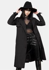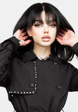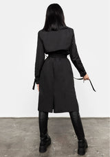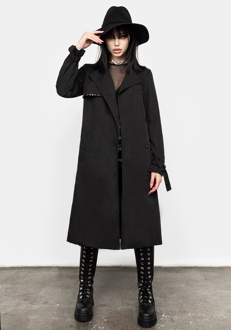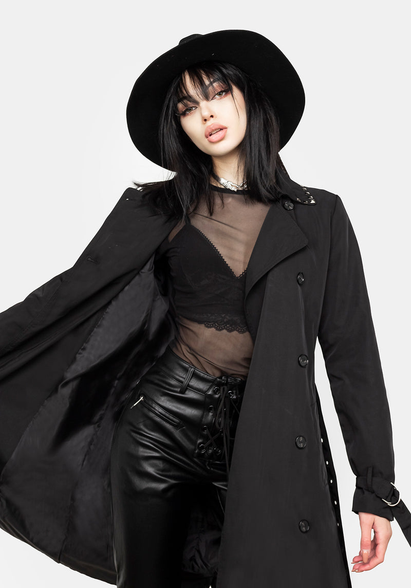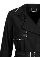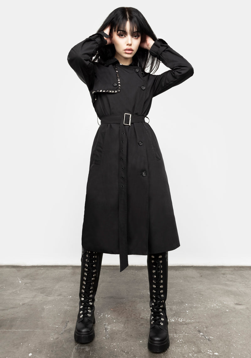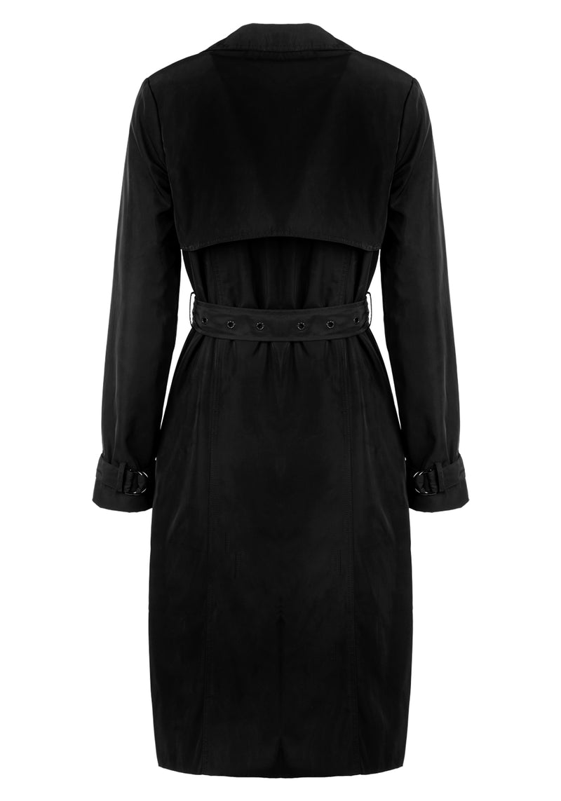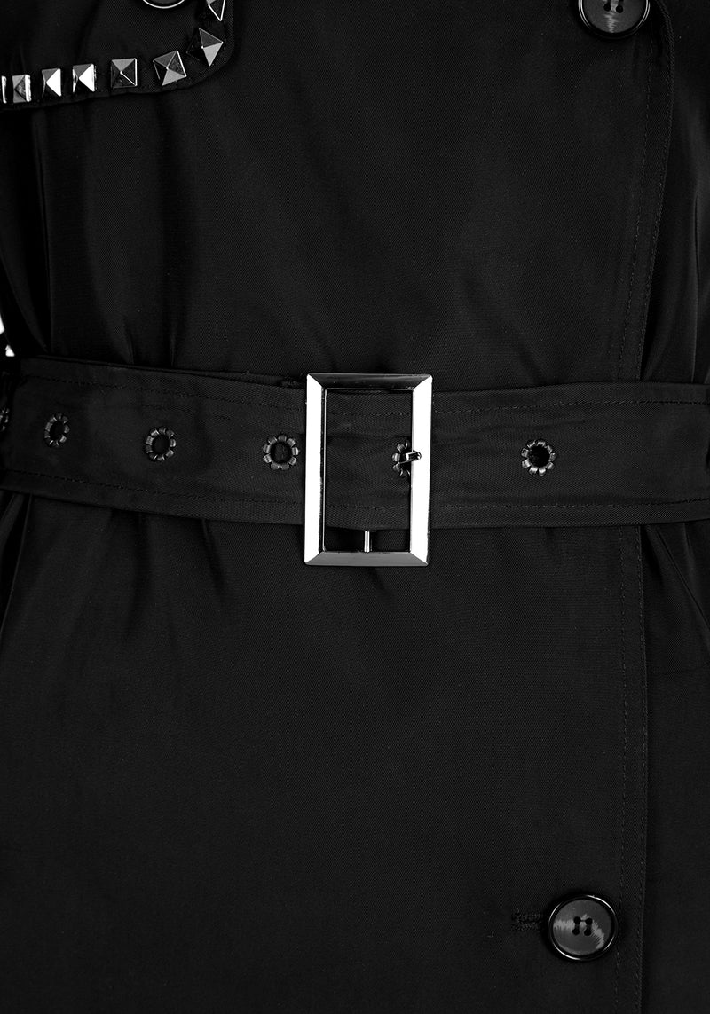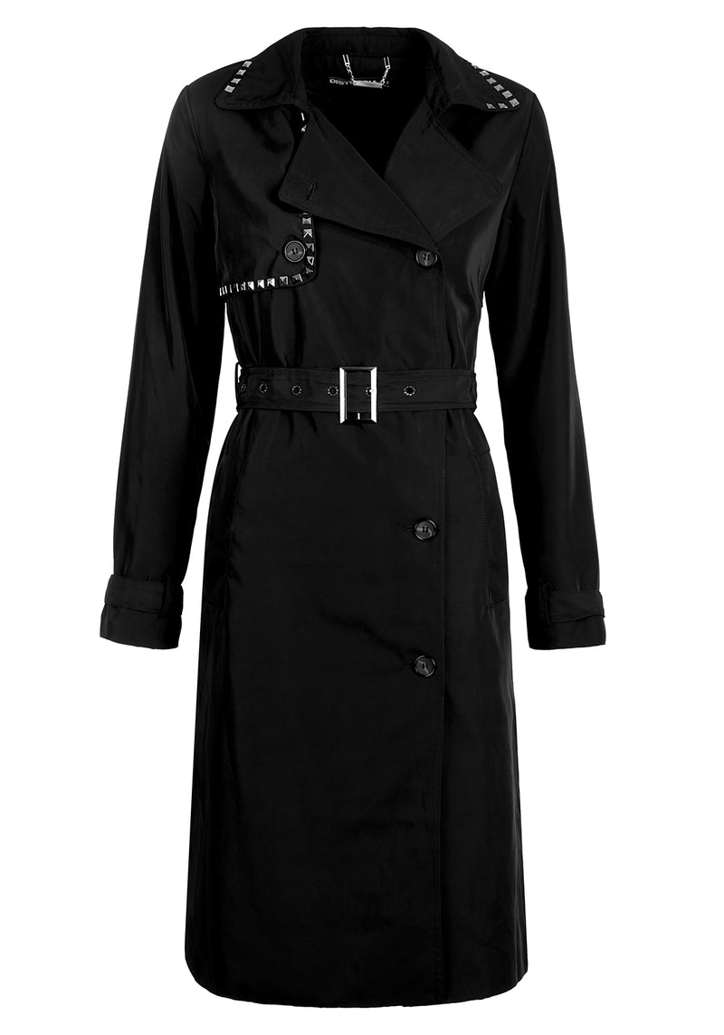 ✧ Removable belt slips through side seam loops to cinch waist, fastening with gunmetal buckle