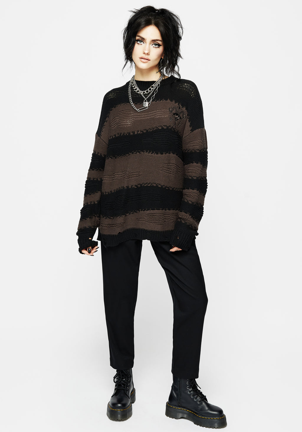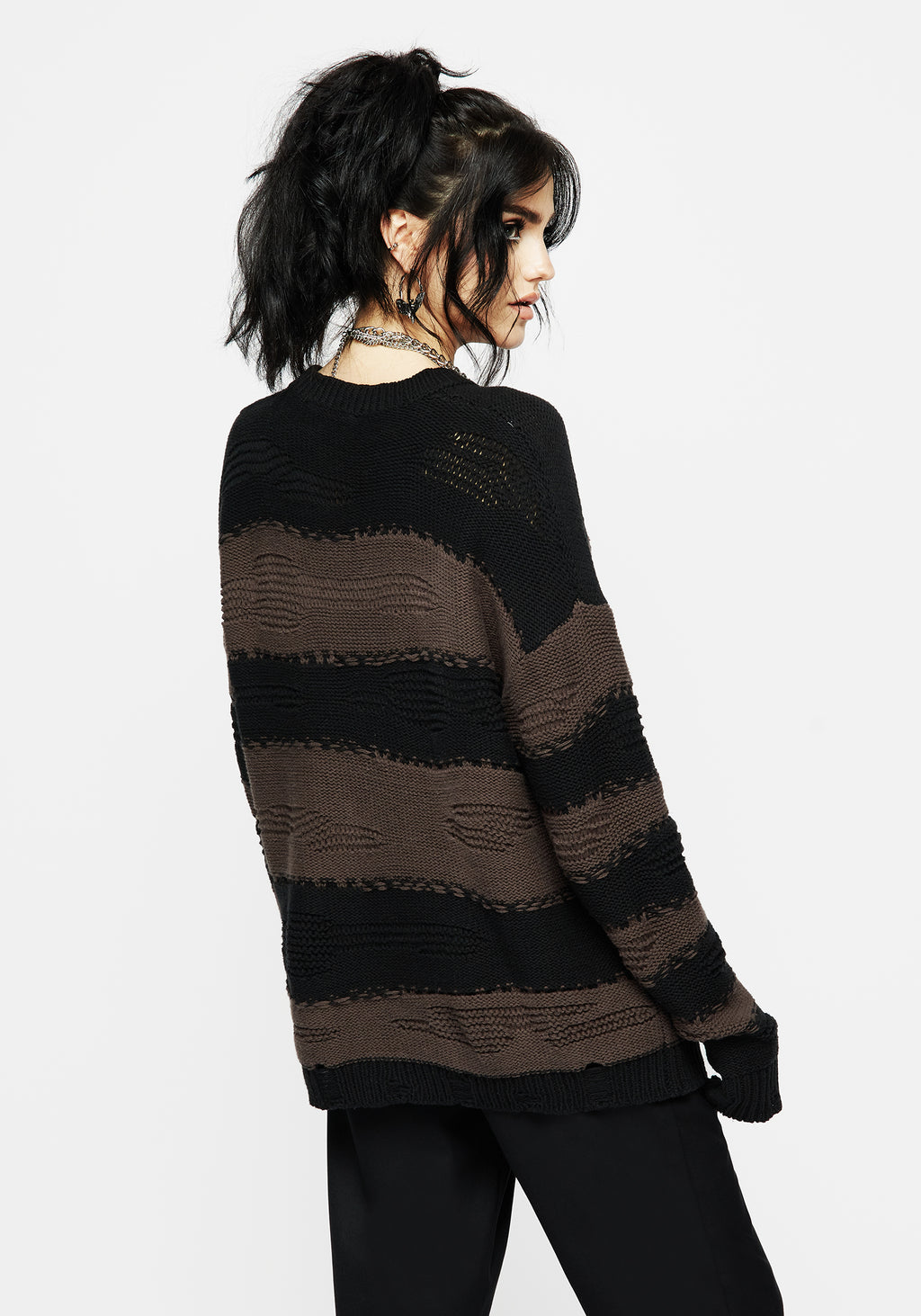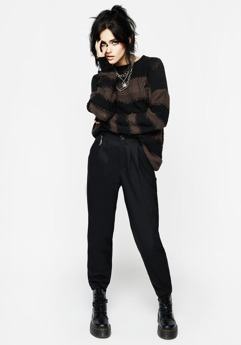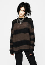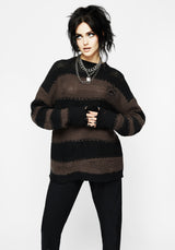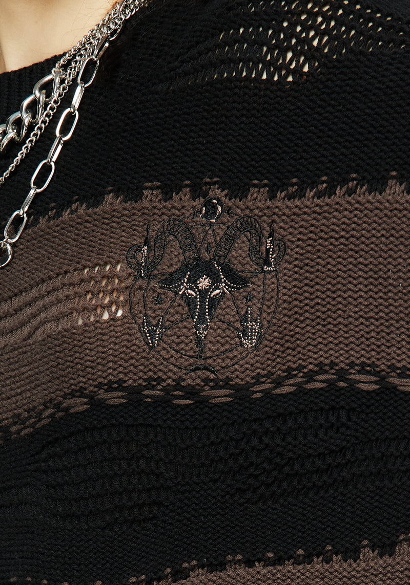 - Black & brown long-sleeved striped knit jumper with embroidery