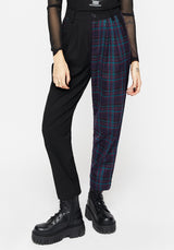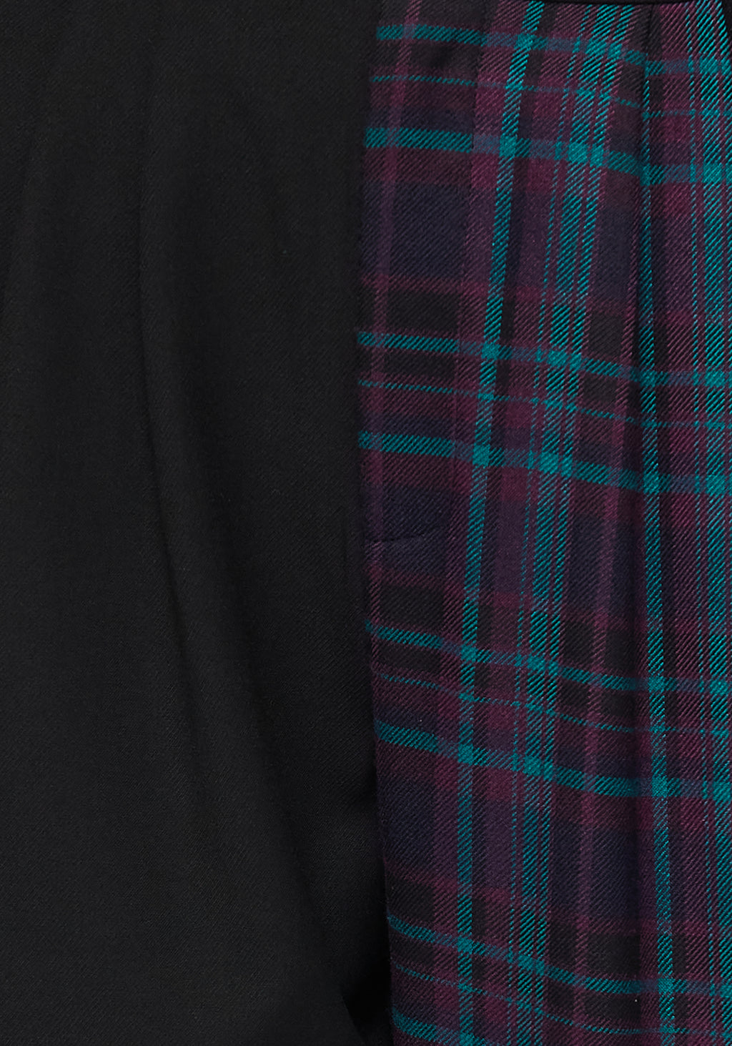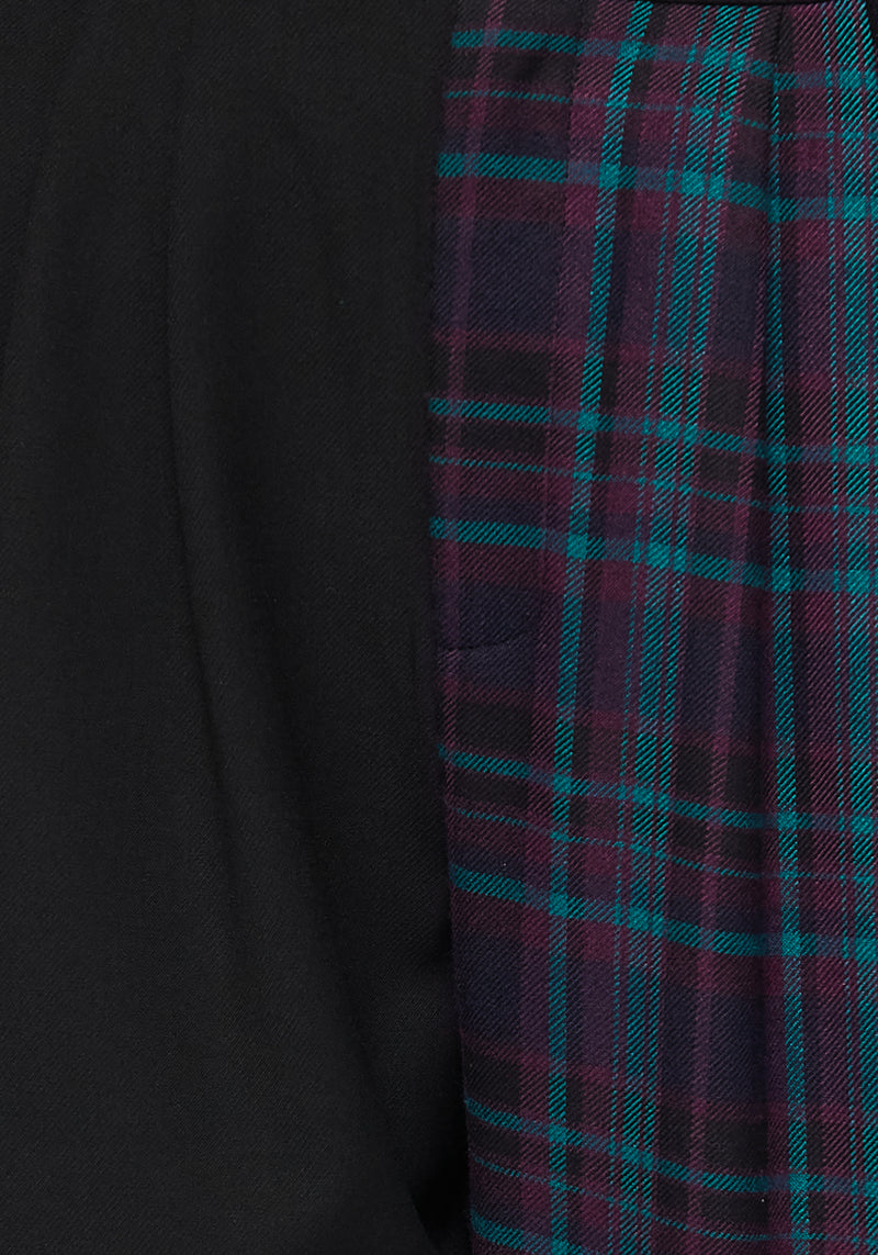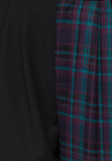 - Spliced construction features jewel-toned blue & purple check with contrasting solid black