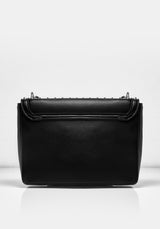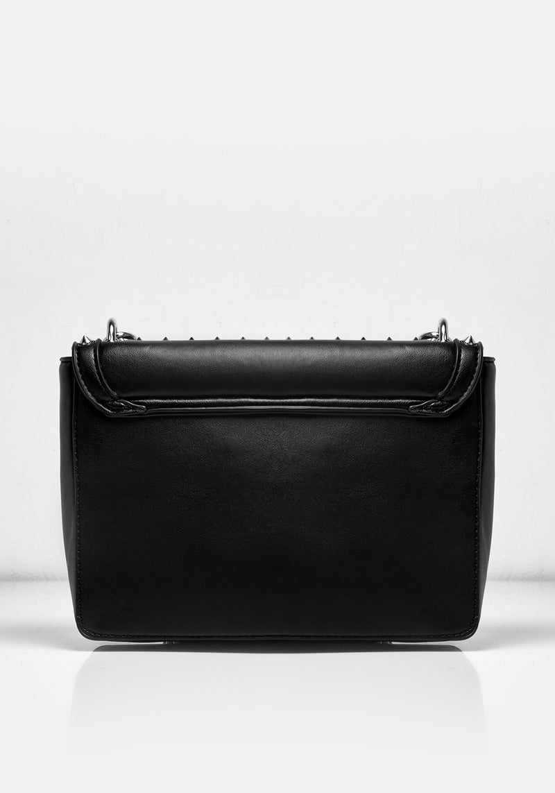 ▶ Studded leather crossbody bag with chain detail