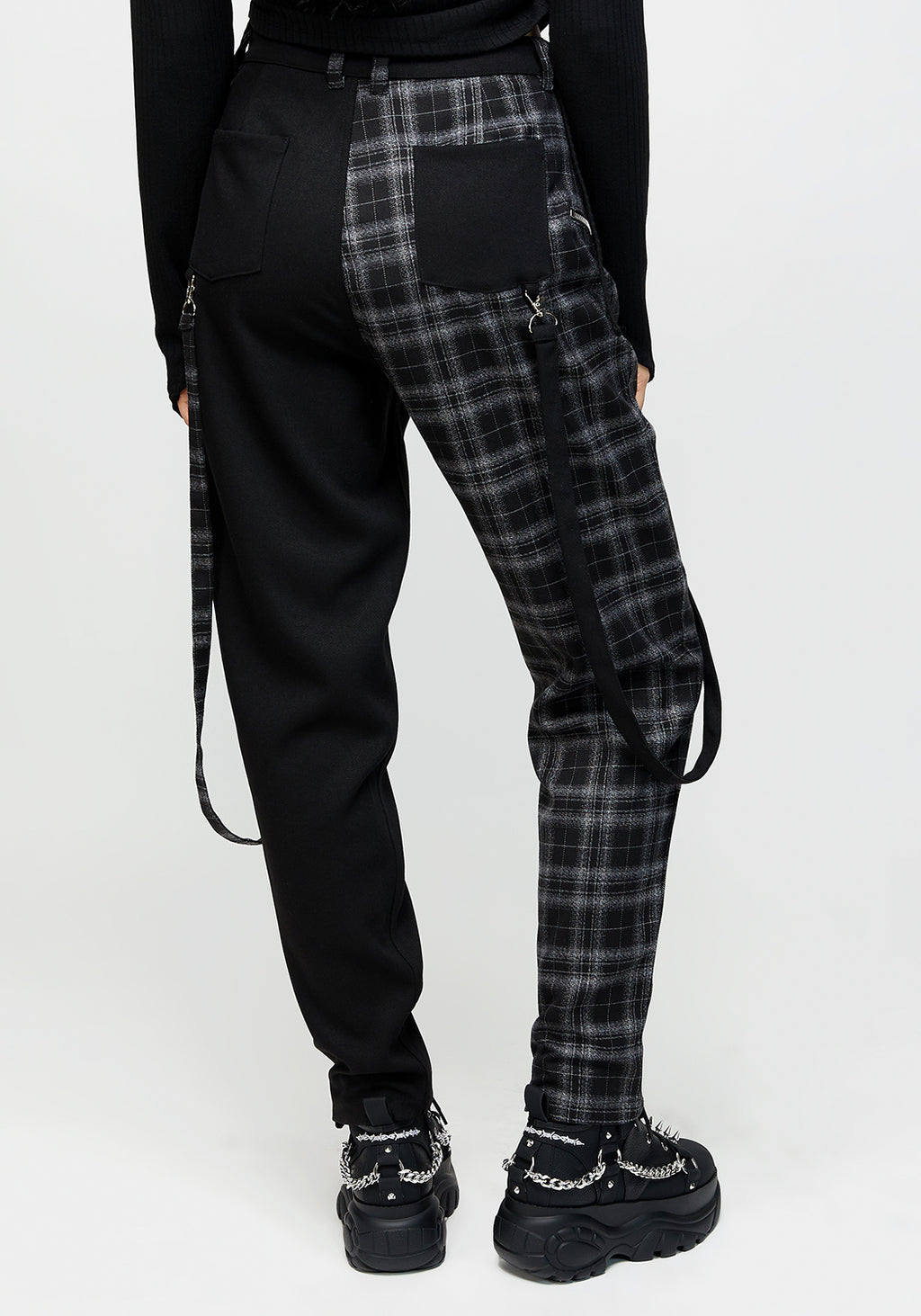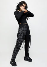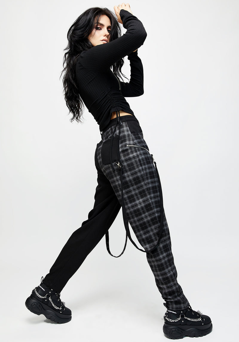 ✦ Black and grey check spliced bondage trouser